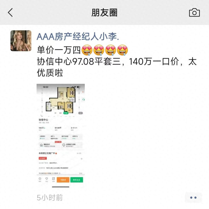 协信有套房子挂牌出售,97平米套三的户型只需要140个W。