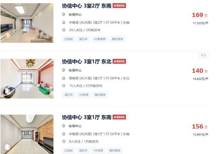就拿协信这个房子举例,在2016年的时候,它大概市场价160万左右;在2018年的时候,它大概200万左右;在2021年的时候,最高值大概在220万左右;而它现在大概140万左右。