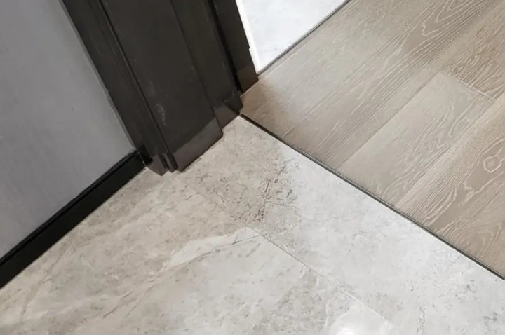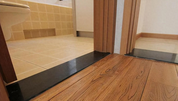 先搞明白一件事。过门石真正干活的就三件事:挡水、收口、垫平高差。卫生间最容易有水漫出来,门口那块石头高点能堵一下。客厅铺瓷砖、卧室铺地板,两种材料接在一起不好看,过门石挡一下就好了。地平面本身不平,铺完木地板和瓷砖后有高差,过门石做个小斜坡就平顺了。