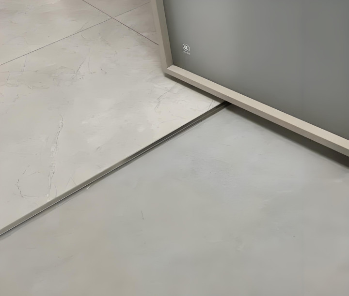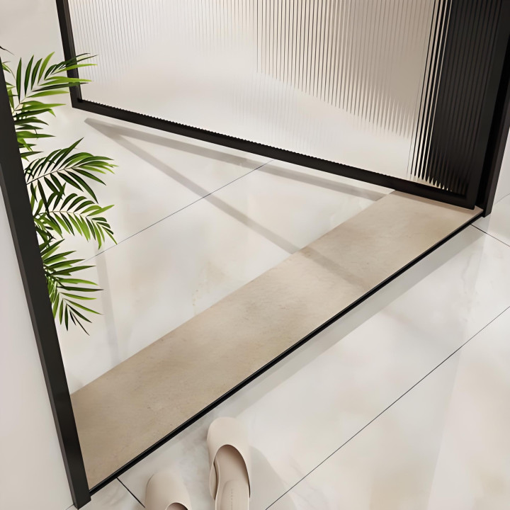 卫生间门口地面下暗藏止水钢板或防水卷材,上面瓷砖直接通铺出去。效果是外面完全看不到石头。这种对防水和施工的要求都高,还得配合找坡。愿意多花钱又想效果好的可以考虑。适用:现代极简风,不介意施工复杂且预算有弹性。